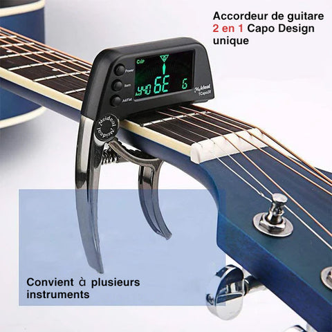 Générateur de sons et capodastre pour guitare acoustique électrique à clipser avec écran LCD 2 en 1 pour accorder la guitare, le ukulélé, la basse, le violon, la mandoline, le banjo, le chromatique, etc.