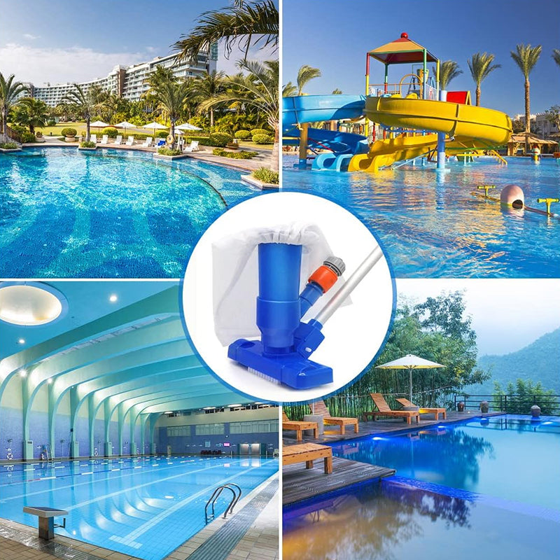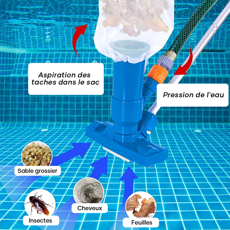 Profitez d'une piscine propre --- Outils professionnels de nettoyage de piscine, tête d'aspirateur avec brosse, l'aspirateur peut aspirer l'eau, les boues et les sédiments. Les déchets restent dans le sac de collecte et l'eau retourne dans le bassin ou la piscine. Gardez votre piscine propre et nette pendant longtemps.