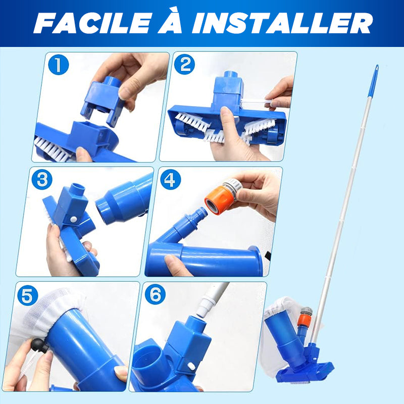 Facile à utiliser --- L'aspirateur de piscine avec son clip ergonomique peut être rapidement installé, retiré et facilement remplacé par d'autres accessoires de nettoyage de piscine. Notre perche de piscine a des extrémités suspendues pour un stockage facile après utilisation et ne prend pas beaucoup de place, ce qui les rend faciles à trouver.