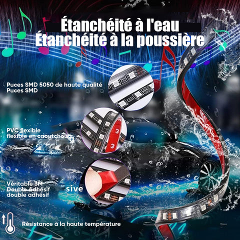 ✌Étanchéité et adhésivité forte ➤ Tout le kit de lumière est étanche. Les bandes LED 5050 sont protégées par le tube en caoutchouc flexible, le contrôleur et tous les connecteurs sont également fabriqués en matériau imperméable, bien protégé des conditions routières et des débris et de la pluie. Ruban adhésif solide pré-appliqué avec des clips de montage de rechange et des attaches de câble.