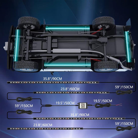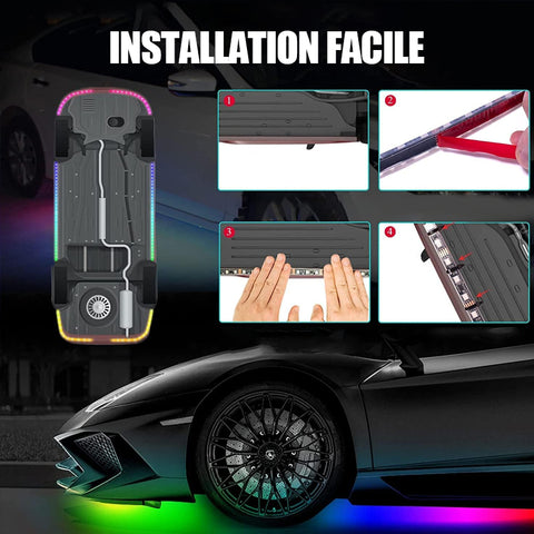 - 1*Bande LED flexible RVB étanche pour châssis de voiture(4pcs)+sans ou avec une télécommande