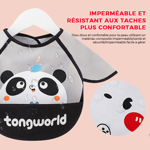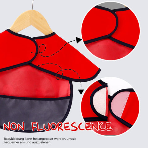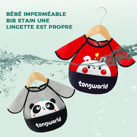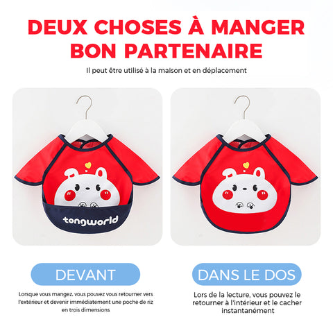• Conception fonctionnelle. Bavoir à manches longues avec récupérateur de nourriture pour garder les vêtements propres pendant que vous mangez, peignez ou faites autre chose. Munie de deux boutons pression, elle est très simple d'utilisation et ne s'accroche pas aux cheveux de vos petits bébés.