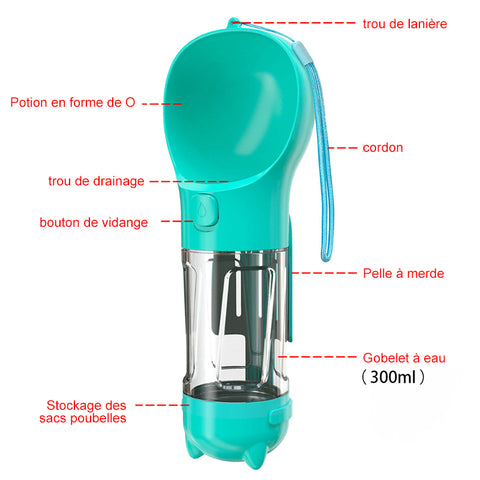 Bouteille d'eau portable pour chien + boîte de sac à caca