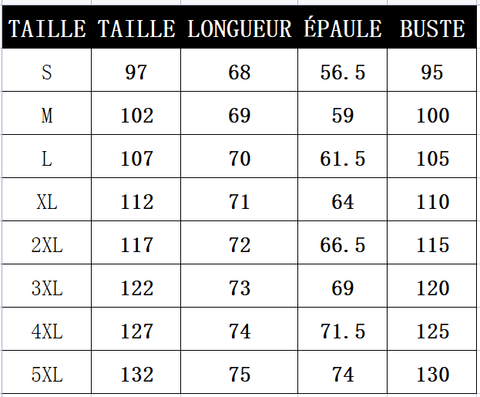 Taille: S-5XL (cm)