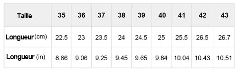 Taille : 35, 36, 37, 38, 39, 40, 41, 42, 43