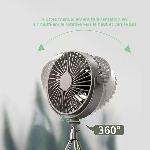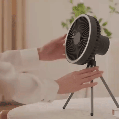 🍃【Crochet et design pliable】 Le ventilateur de camping est équipé d'un crochet en aluminium et d'un trépied amovible, vous pouvez l'accrocher à votre tente, à des branches d'arbres, le poser sur votre bureau ou le monter au mur. Ce ventilateur de tente prend en charge une rotation de 200 °, ce qui vous permet d'obtenir un flux d'air de différentes directions, vous gardant au frais sous différents angles. C'est un compagnon idéal pour votre camping d'été, votre pêche, vos activités de plein air ou toute situation d'urgence.