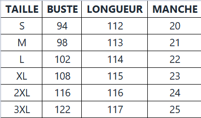 Veuillez suivre strictement le tableau des tailles pour sélectionner la taille. Ne choisissez pas directement en fonction de vos habitudes.