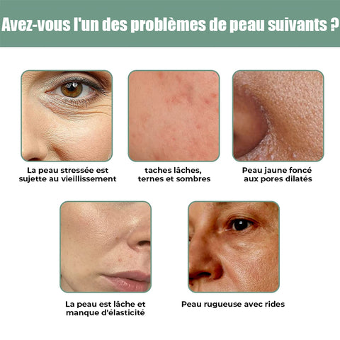 Problèmes de soins de la peau : conditionnement en profondeur, estompe les rides, sans danger pour tous les types de peau.