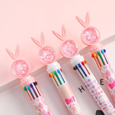 【Stylo à bille 10 en 1】 noir, bleu, rouge, orange, vert, rose, bleu clair, marron, rouge foncé et violet, total 10 couleurs vives différentes d'encres en 1 stylo à bille pour vous pour les changer à volonté.
