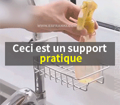 N'hésitez pas à mettre facilement vos éponges, épurateurs, brosses, cuillères, ustensiles, savons liquides ou en barre et même une fonte lourde sur le support organisateur d'évier.