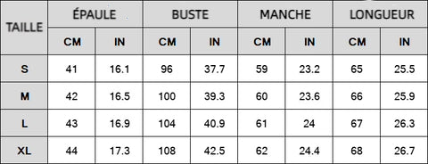 • Suggestions de nettoyage: Laver en machine à l'eau froide avec des vêtements de couleur similaire, cycle délicat, sécher au sèche-linge à basse température, retirer rapidement et repasser à basse température si nécessaire.