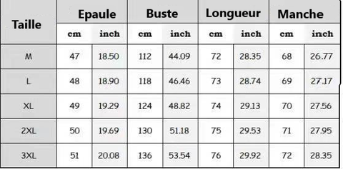 • Processus: la fabrication du produit a atteint le point d'impeccabilité, soyez assuré d'acheter, veuillez lire le tableau des tailles avant l'achat.