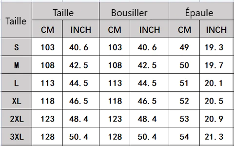 Taille: S-3XL (cm/in)