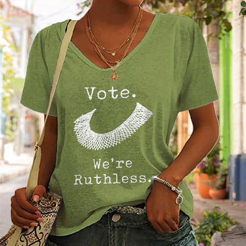 T-shirt Décontracté Á encolure En V Et Lettres Imprimées