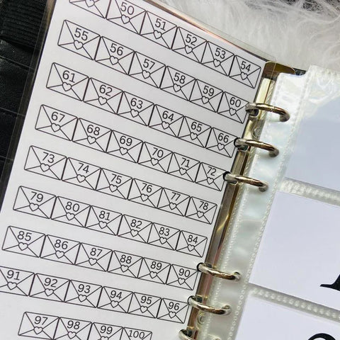 Cette stratégie est variable et vous permet d'épargner autant ou aussi peu que vous le souhaitez. Chaque classeur du défi comprendra des enveloppes/pochettes numérotées de 1 à 100 et un tableau de suivi pour marquer les pochettes remplies. Lancez votre épargne et amusez-vous !