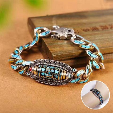 - 1*Bracelets avec Mantra à Six Caractères et Dzi à Neuf Yeux