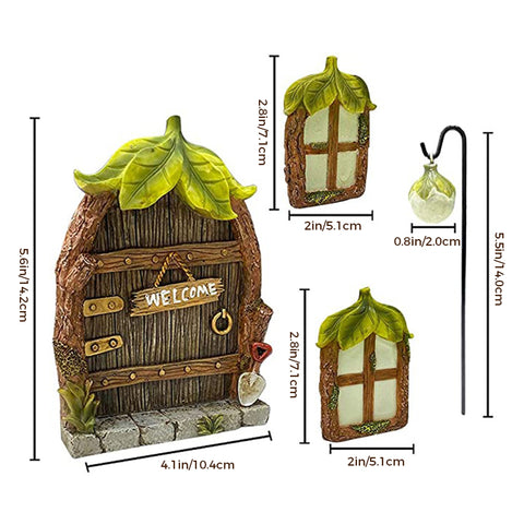 Portes et fenêtres Mini Fairy Garden: Les fées sont à la recherche d'une maison. Accrochez ces délicates portes et fenêtres aux arbres de votre jardin et invitez les petites fées à rester ici. Les fenêtres brillaient dans le noir et il y avait une lampe à litière pour chat devant la porte.