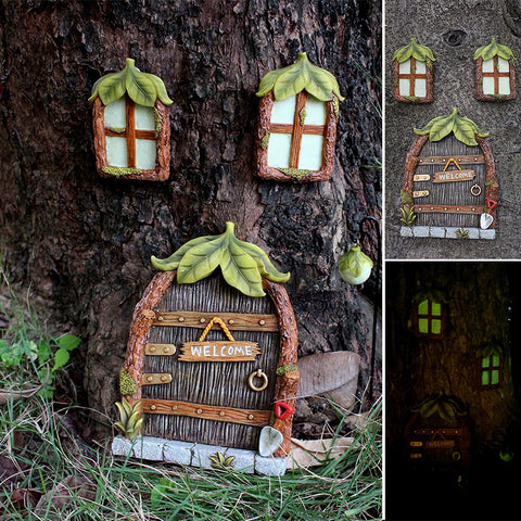 Haute Qualité: Les portes et fenêtres de jardin de fées miniatures sont fabriquées en résine de haute qualité. Les deux fenêtres sont recouvertes de phosphore, qui absorbe la lumière du soleil pendant la journée et brille automatiquement la nuit.