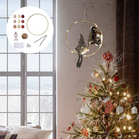 Emballage : 1* anneau, 1* rouleau de ficelle, 9* boule, 1* gnome, 1* lumière LED, 1* chaîne de suspension, 1* pièce autocollante