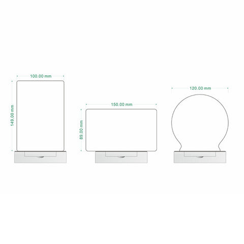Taille: Rond, rectangulaire horizontal, rectangulaire vertical