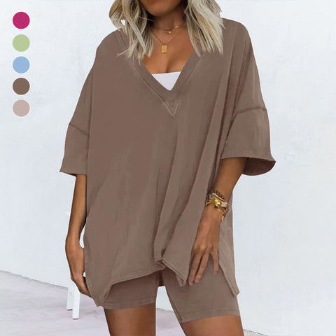 Faites partie de votre vie quotidienne: Ce tee-shirt boyfriend surdimensionné est accompagné d'une paire de shorts de motard assortis, un style sexy chic et énergique.