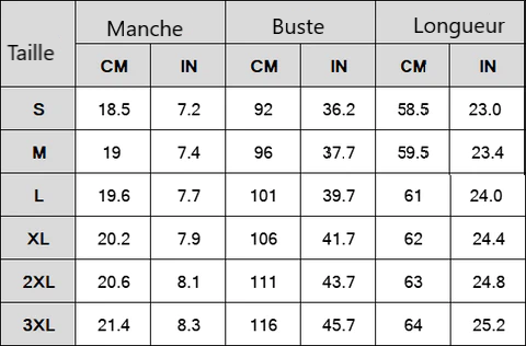 Taille (cm/pouce): S-3XL