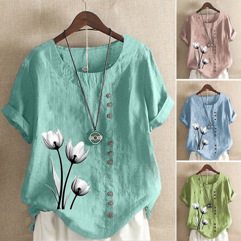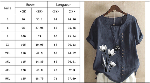 đCaractĂ©ristiques: couleur unie, encolure ras du cou, manches retroussĂ©es, neuf boutons dĂ©coratifs en mĂ©tal sur la poitrine, fente latĂ©rale, tee-shirts basiques Ă manches courtes.