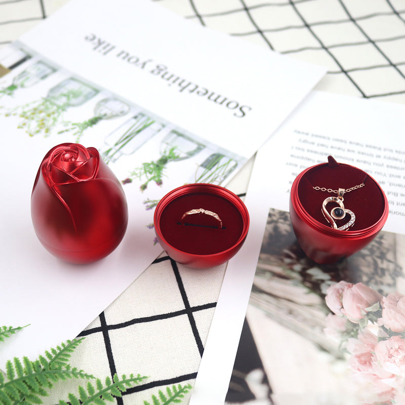 Les roses rouges représentent la passion et la romance. La boîte à bijoux en rose rouge éternelle représente l'amour éternel.