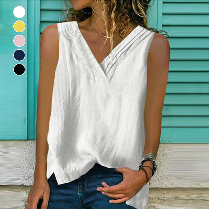- Forfait: 1 * Gilet sans manches col V uni en coton et lin