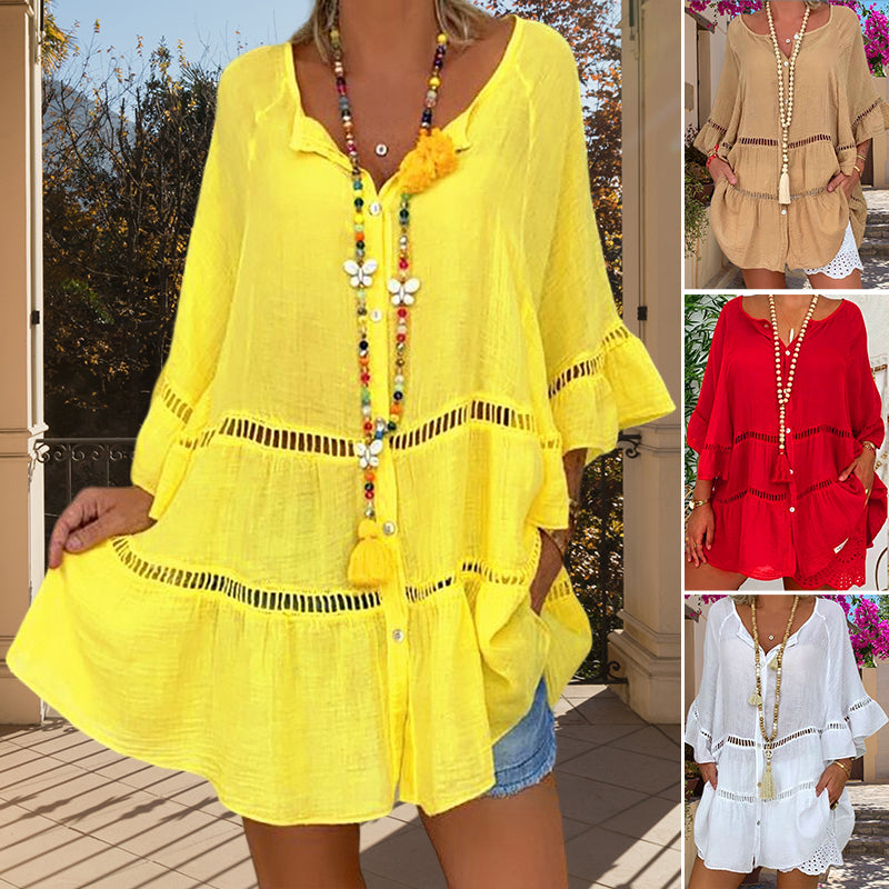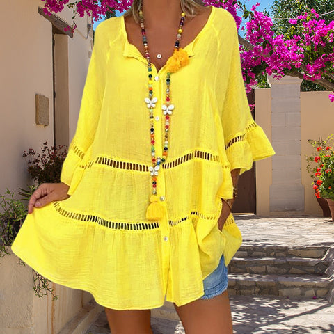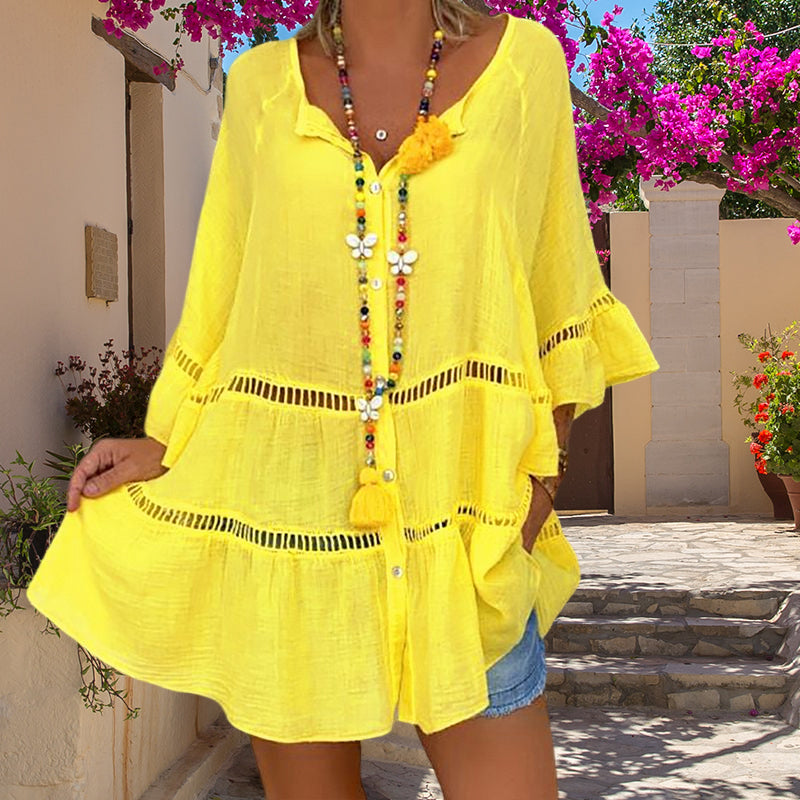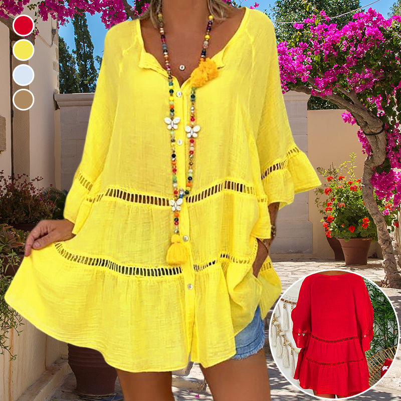 - 1 * Haut ample à col en V en coton et lin