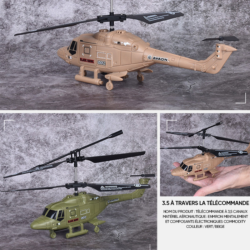 Chasseur simulé: Basé sur l'hélicoptère militaire, les détails du chasseur sont hautement restaurés et la fabrication est élaborée, satisfaisant la nostalgie militaire de vos enfants et de vous-même. En même temps, cet hélicoptère de combat RC est équipé d'un double moteur à coupelle creuse, qui a une forte puissance de double entraînement pour garantir le fonctionnement souple et sensible de l'hélicoptère jouet.