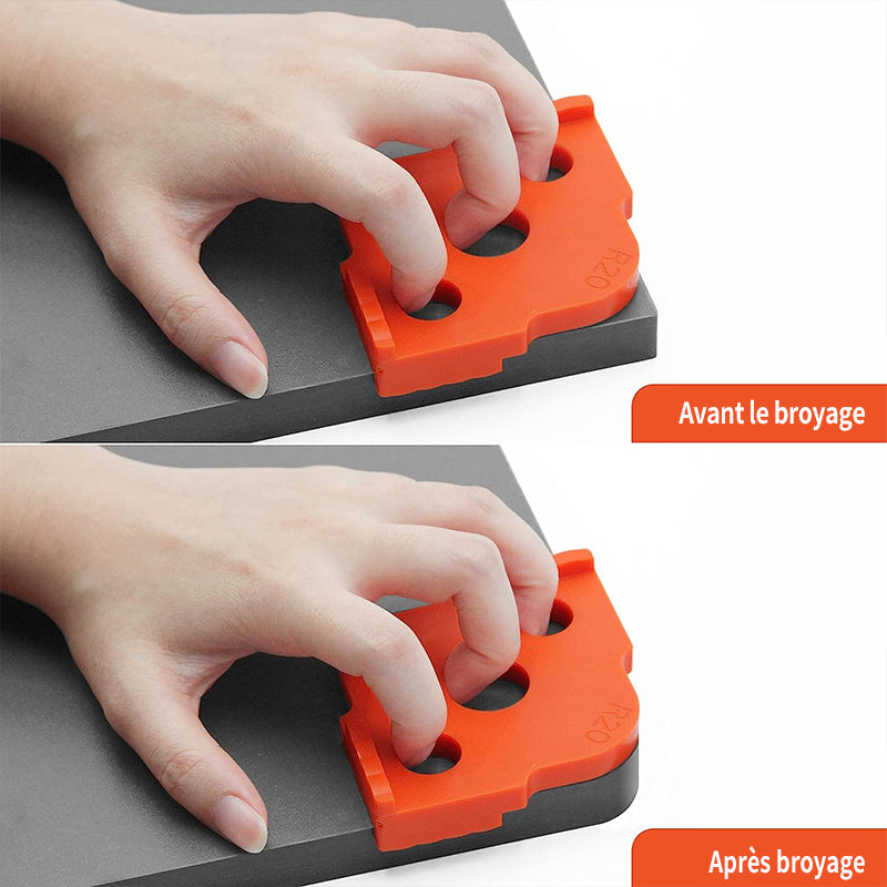 【Conception sécuritaireã€?/strong>Les gabarits de toupie pour coins arrondis, une conception ergonomique à trois trous fixes, facilitent la stabilisation de l'appareil et protègent efficacement vos mains contre les blessures causées par les mèches de toupie d'ajustement.
