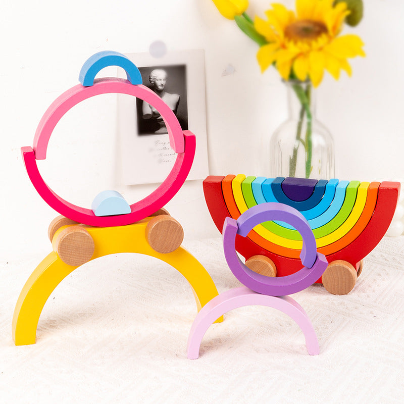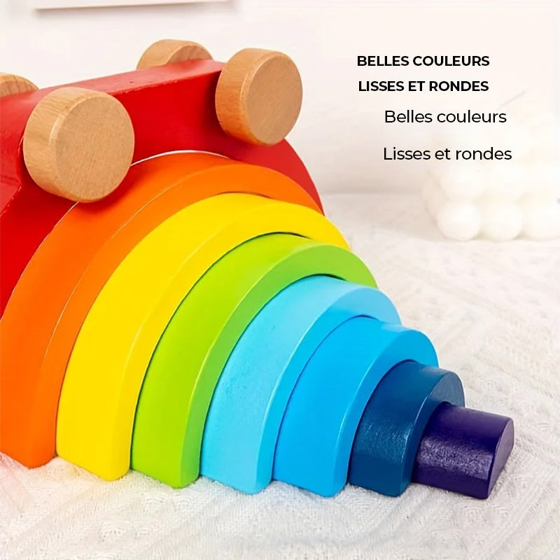 JEU D'EMPILAGE SUPÉRIEUR - Notre arc-en-ciel emboîtable est fabriqué en bois robuste et texturé, ce qui facilite le jeu et l'empilage: Contrairement à d'autres arcs-en-ciel à empiler, les pièces de notre produit ne sont pas inclinées ou de travers, ce qui permet des possibilités d'empilage infinies sur n'importe quelle surface.