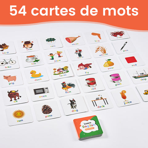 • Comprend 54 cartes de mots: Équipé de cartes de 54 mots, le jeu stimule la curiosité des enfants et élargit leur vocabulaire. La variété des mots et les images qui les accompagnent encouragent l'exploration et offrent des possibilités de développement du langage.