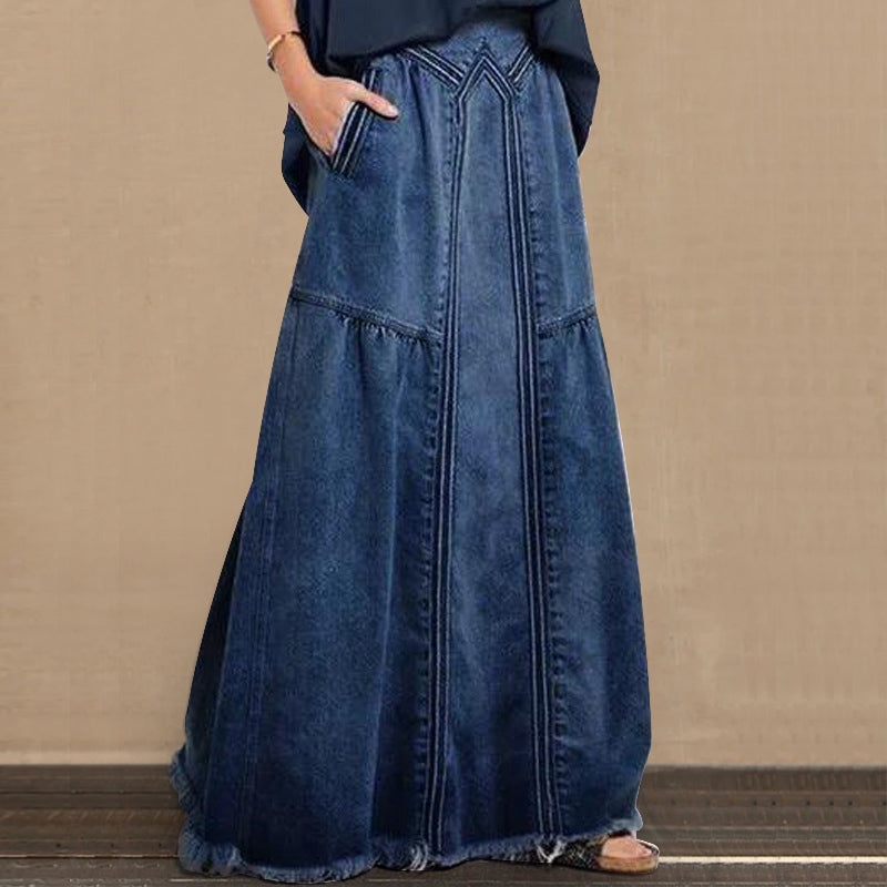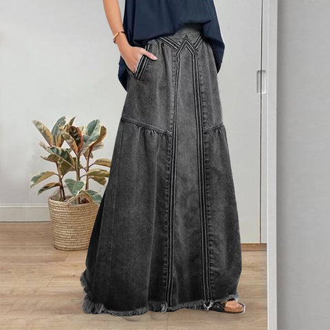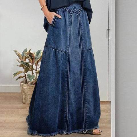 - 1* Jupe En Jean Lâche Taille Élastique Couleur Unie Pour Femmes