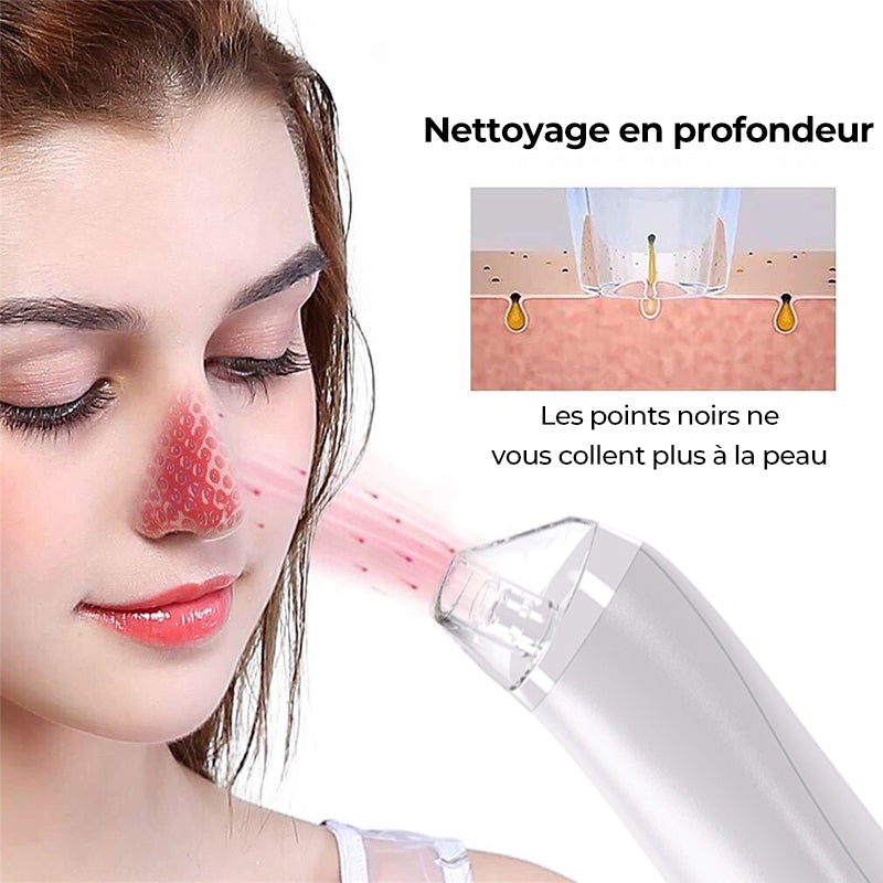 【Un aspirateur de points noirs à technologie améliorée】- L'aspirateur de points noirs super puissant peut être utilisé en toute sécurité sur le visage directement réaliser un nettoyage en profondeur et éliminer efficacement les points noirs, les points blancs, la peau morte, traiter l'acné, la graisse et les résidus de maquillage. Ce qui peut augmenter la circulation sanguine et l'élasticité de la peau, moins de rides, rétrécir les pores, lisser les ridules sans faire mal à votre peau.