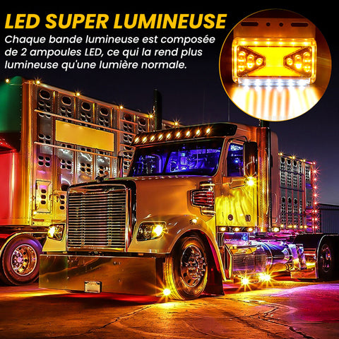 Bande lumineuse de clignotant et de marquage à LED ultra-mince 24V étanche. 15 diodes LED à haute luminosité. Boîtier en ABS très résistant aux chocs, étanche à la poussière et à l'humidité, bonne dissipation de la chaleur. Montage en surface, facile à installer.