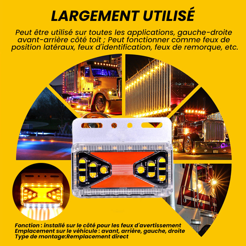 Feux de position à usage multiple: ils peuvent être largement utilisés comme feux de position latéraux, feux de gabarit, feux réflecteurs et peuvent également remplacer les feux de position de la remorque. Plus lumineux et plus sûr.