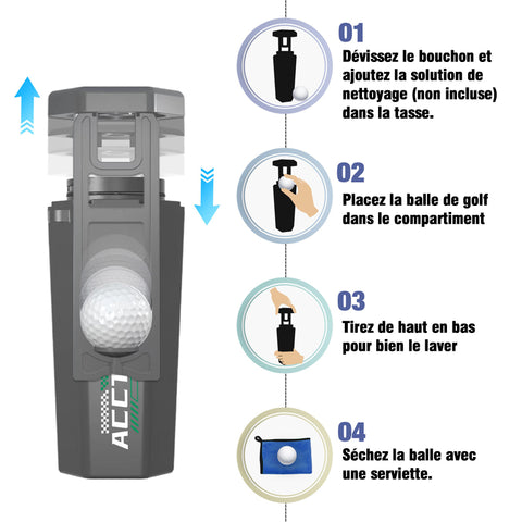 Améliorez votre score: placez la balle de golf sale dans la rondelle de balle de golf, tirez vers le haut et vers le bas, puis essuyez avec une serviette 100 % coton avec mousqueton, super efficace et plus propre. Obtenez une balle propre à chaque coup de départ, conduisez plus loin et puttez plus droit.