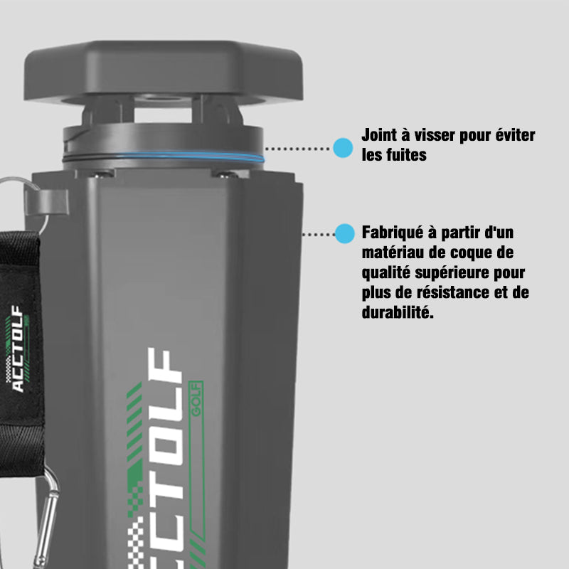Design moderne: design ergonomique avec poignées abrasives fines pour plus de stabilité. Les couvercles avec bagues d'étanchéité en caoutchouc empêchent les fuites. Fente spéciale balle de golf pour un lavage en profondeur de votre balle de golf.