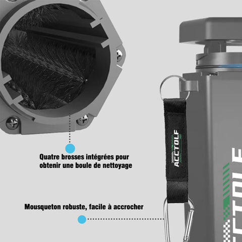Facile à emporter: ce nettoyeur de balle de golf portable avec mousqueton à accrocher à votre sac de golf ou à ranger dans le porte-gobelet du chariot de golf. Il est à vos côtés, où que vous alliez sur le parcours.