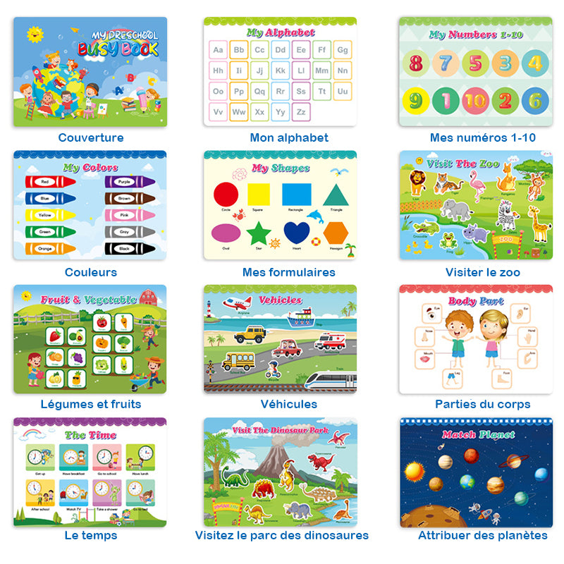 • 👦🏻LIVRE OCCUPÉ MONTESSORI👧🏻 Le livre chargé vise à améliorer les compétences cognitives, l'alphabétisation de base, la mémoire, la reconnaissance et la coordination œil-main (y compris les enfants autistes et les enfants présentant des retards de développement du langage) pour créer un lien entre l'apprentissage et les jeux afin que les enfants peut apprendre à penser, à percevoir les couleurs et à élargir ses connaissances logiques.