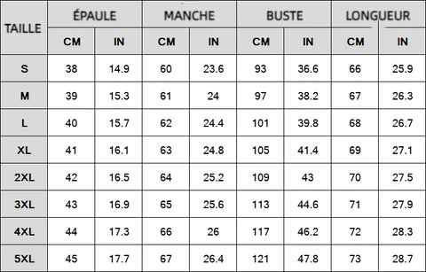Taille: S-5XL (cm / in)
