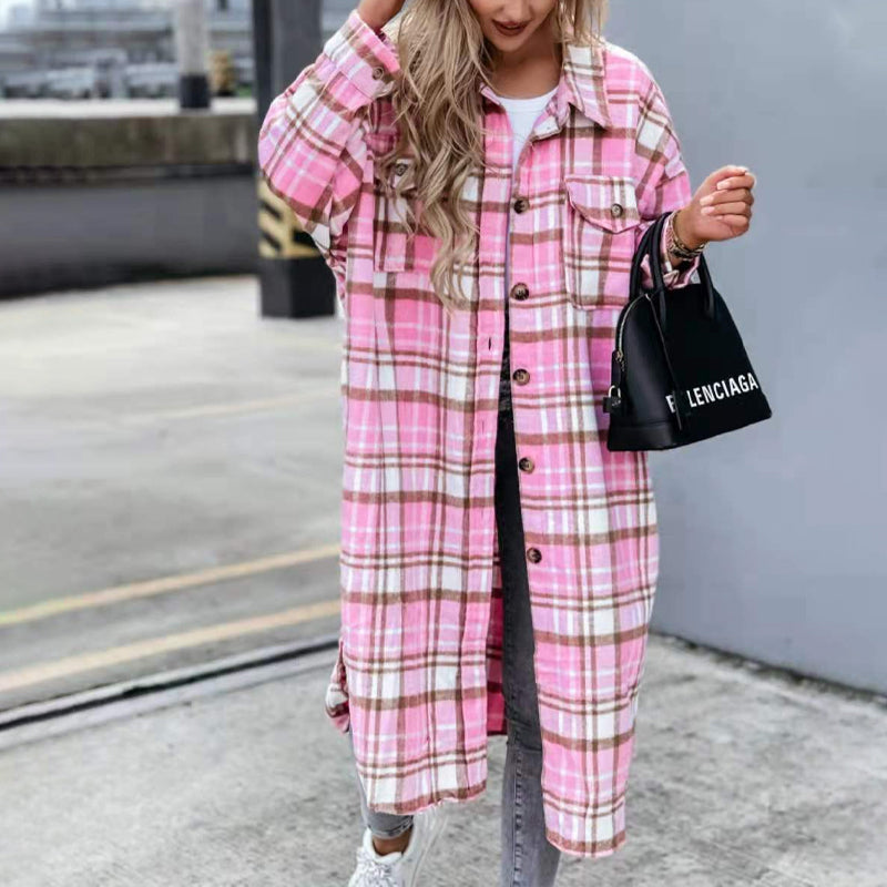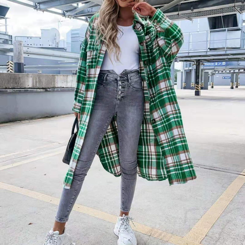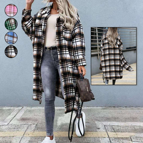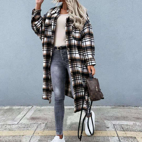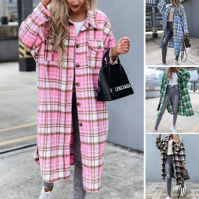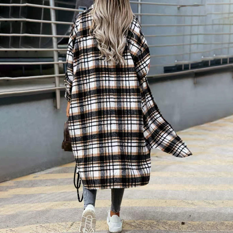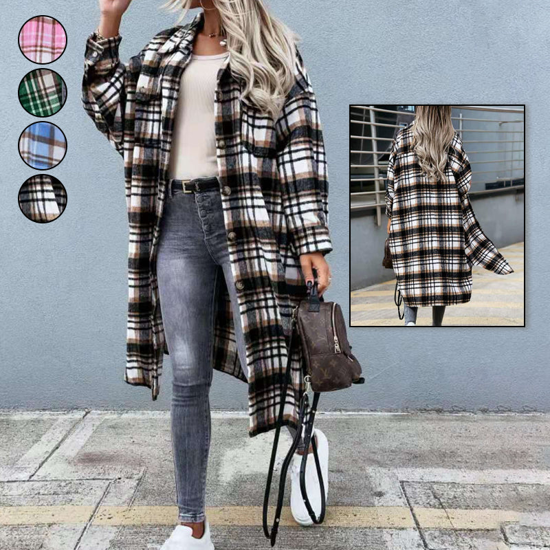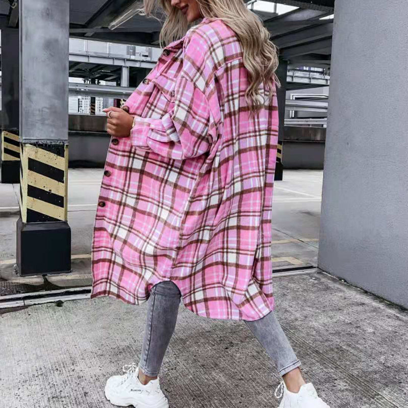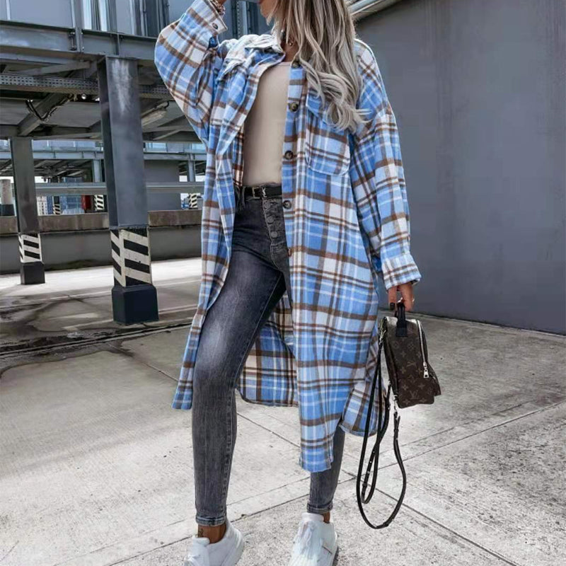Manteau Chemise Décontractée à Carreaux pour Femmes