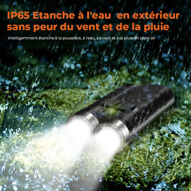 Elle est super lumineuse avec une puissance maximale de 900 lumens et peut éclairer jusqu'à 100 mètres de distance. Elle est étanche selon la norme IP65, vous n'avez donc pas à craindre qu'elle soit mouillée.