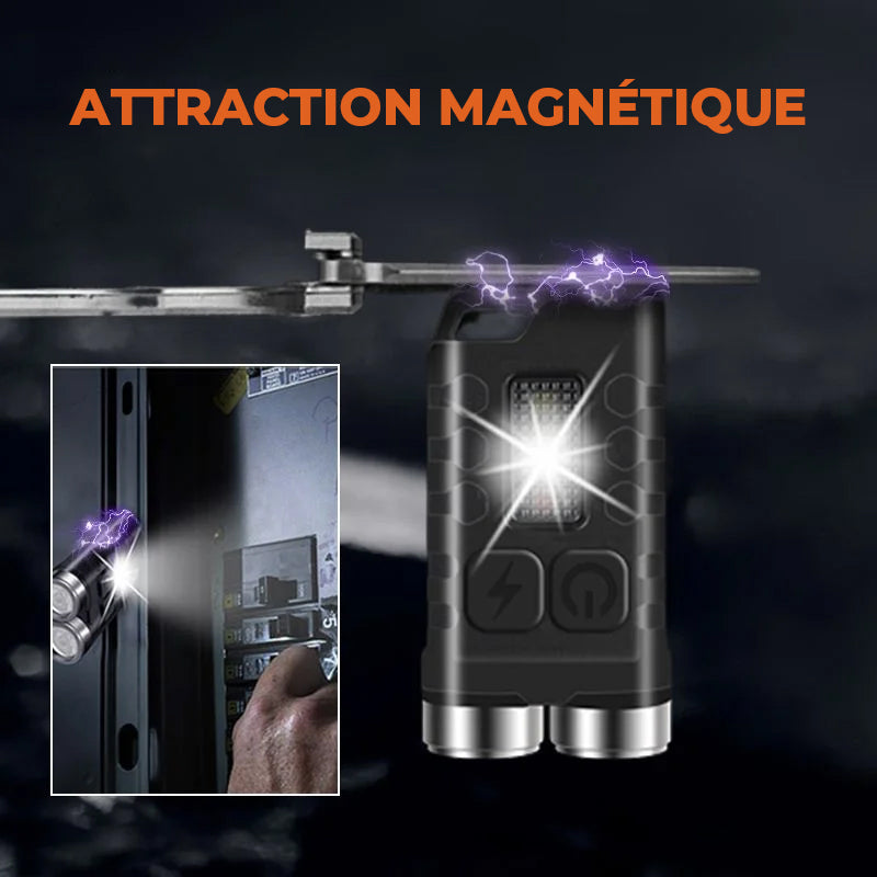 La Torche Magnétique pour Porte-clés est une petite lampe de poche LED, légère et puissante, qui s'accroche facilement à votre trousseau de clés.