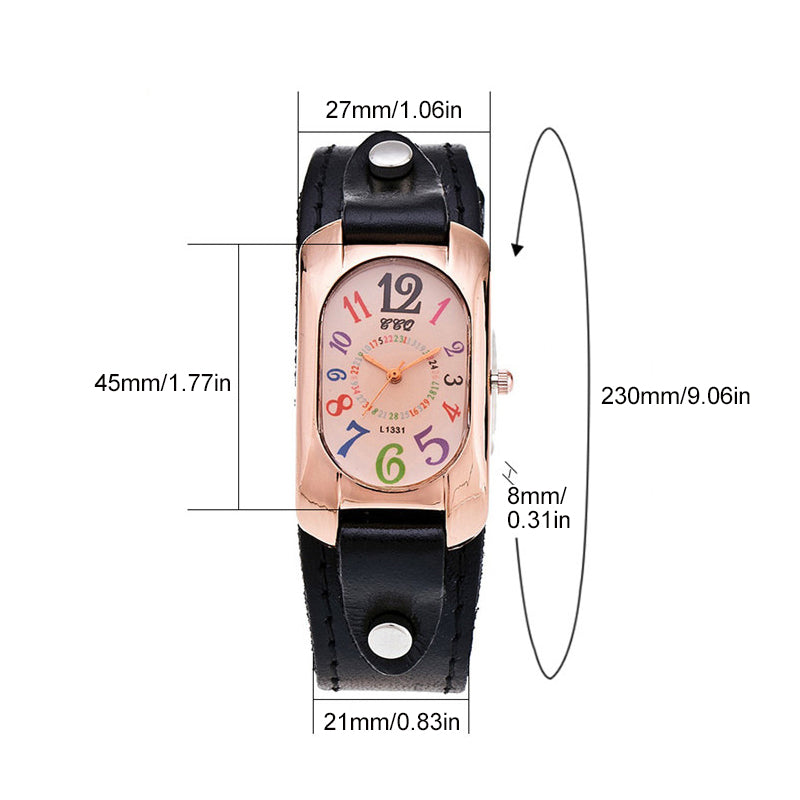 • Cette montre est à la fois rétro et moderne avec une touche de couleur. Le design élégant et le confort de port font de cette montre le compagnon idéal au travail, à l'école ou pendant le sport.