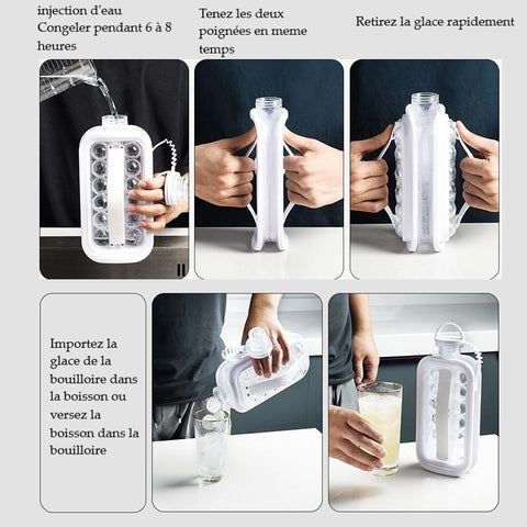 Soyez un bac à glaçons et une bouteille en un seul gadget ! Sortez votre glace du congélateur, versez votre boisson préférée et vous aurez une bouteille prête à l'emploi!