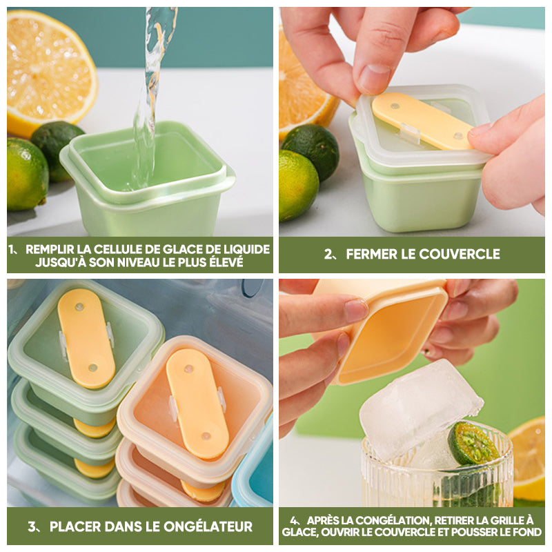 【Facile à libérer, facile à façonner】Il vous suffit de placer votre index et votre majeur sur le côté opposé du bac à glaçons, d'appuyer sur le fond souple avec votre pouce, et vous obtiendrez un glaçon parfait. Par rapport aux bacs à glaçons en silicone, nos bacs à glaçons sont plus durs et plus faciles à façonner.