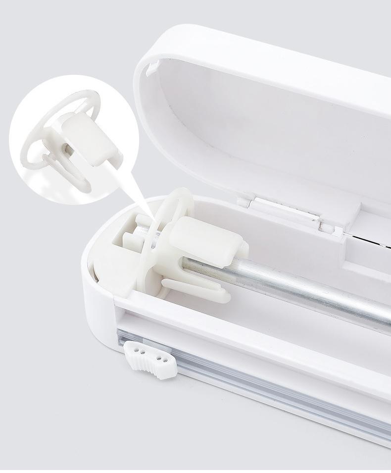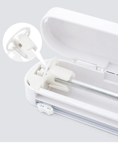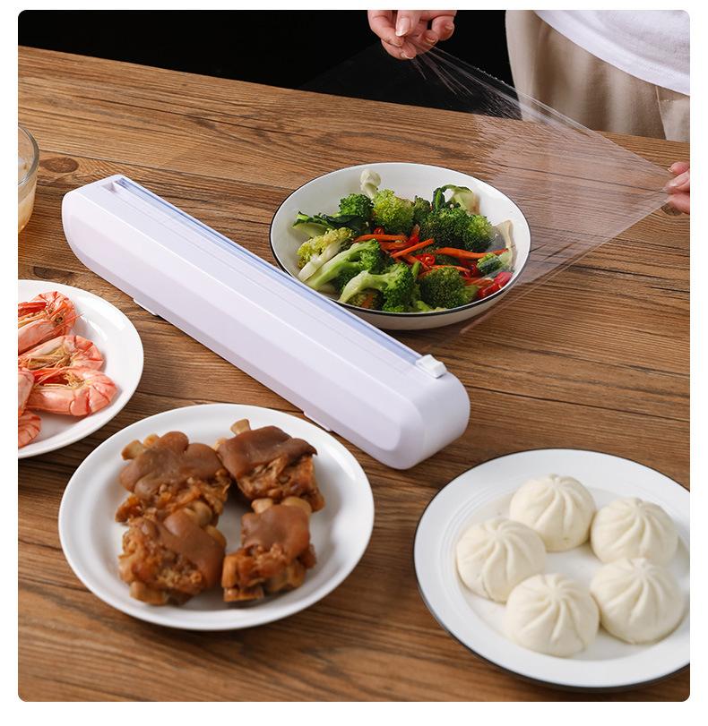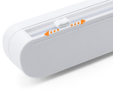 - HAUTE QUALITÉ: Fabriqué en matériau ABS, résistant aux hautes et basses températures, durable, non toxique et sans odeur. Bouton de coupe coulissant bidirectionnel, tirez la quantité de film que vous voulez sans utiliser la lame de scie à métaux ou les ciseaux dangereux. Le petit cutter le coupe parfaitement, pas plié ni collé sur lui-même en plastique sur plat.